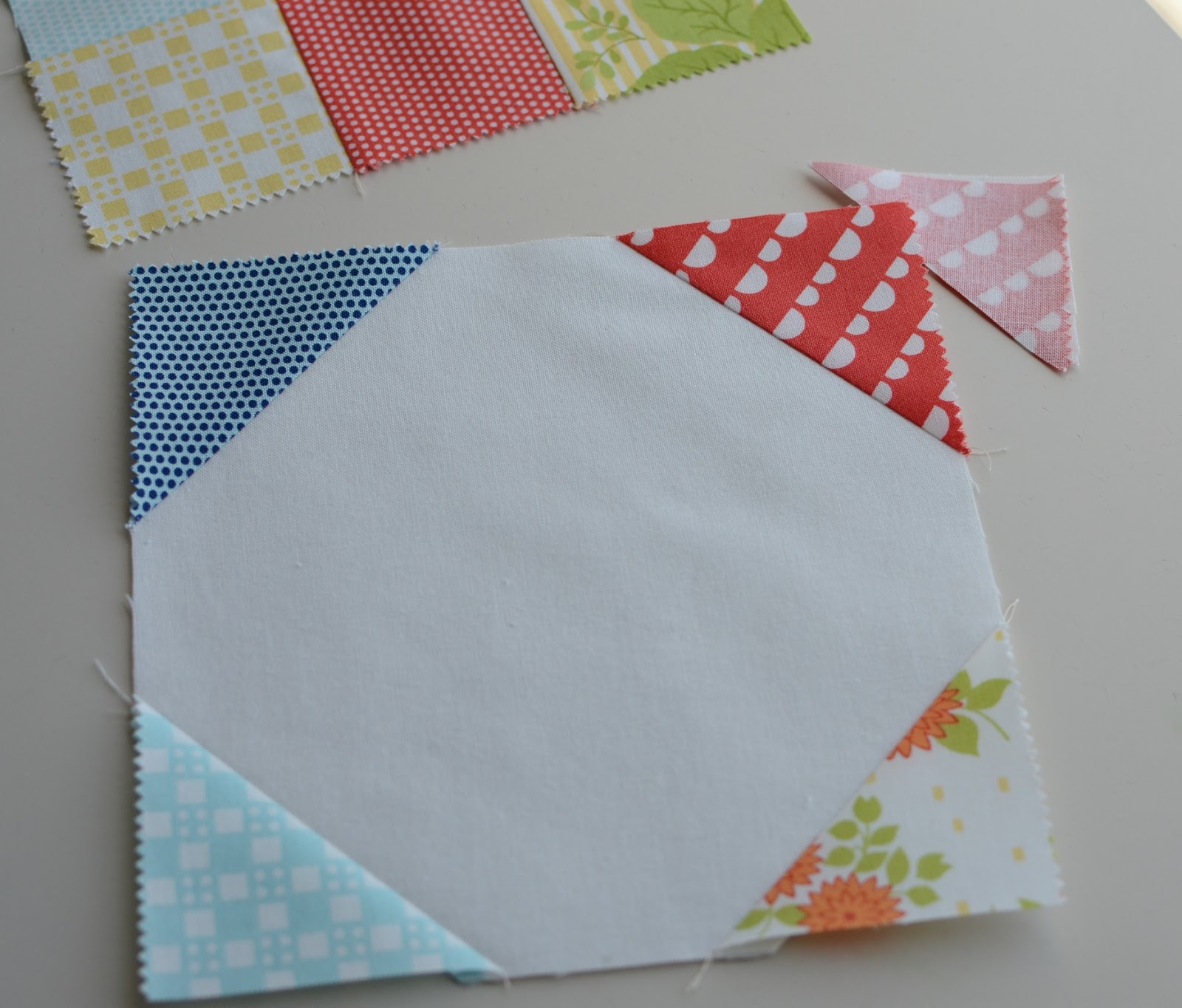 Set your blocks by alternating the two. Here's what I managed to finish today! I'm liking how scrappy it's looking. I'm adding in a few navies, some Simply color and some previous lines of Bonnie and Camille.